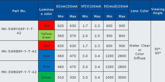 • 产品特性: 发光亮度高, 使用简单; 产品经过严格的可靠实验, 信赖性高。